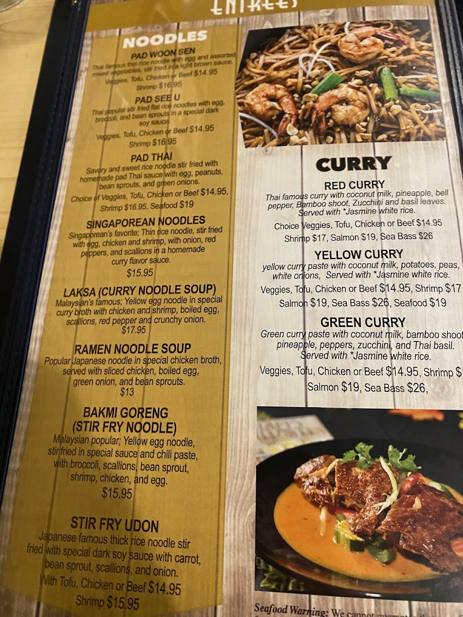 Chef Laura Smith crafts her own unique sauces, ensuring that each plate bursts with flavor. Customers rave about the generous portions of sashimi salad and the delightful curry crab rangoons. The satay and freshly made dumplings are also notable highlights, showcasing the kitchen's commitment to quality and freshness.